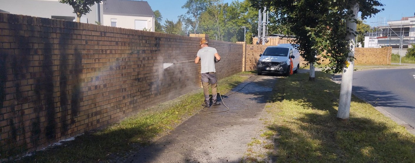 Bei der Graffitientfernung setzen wir auf die 3-Schritte-Methode und können somit Graffiti von allen Natursteinen, Beton, Klinker, Kunststoffen, Metall und vielen anderen Fassadenwerkstoffen entfernen.